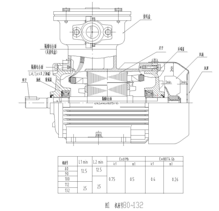 本系列電動機主體結構見圖 1.2, 接線盒結構見圖 3.4.